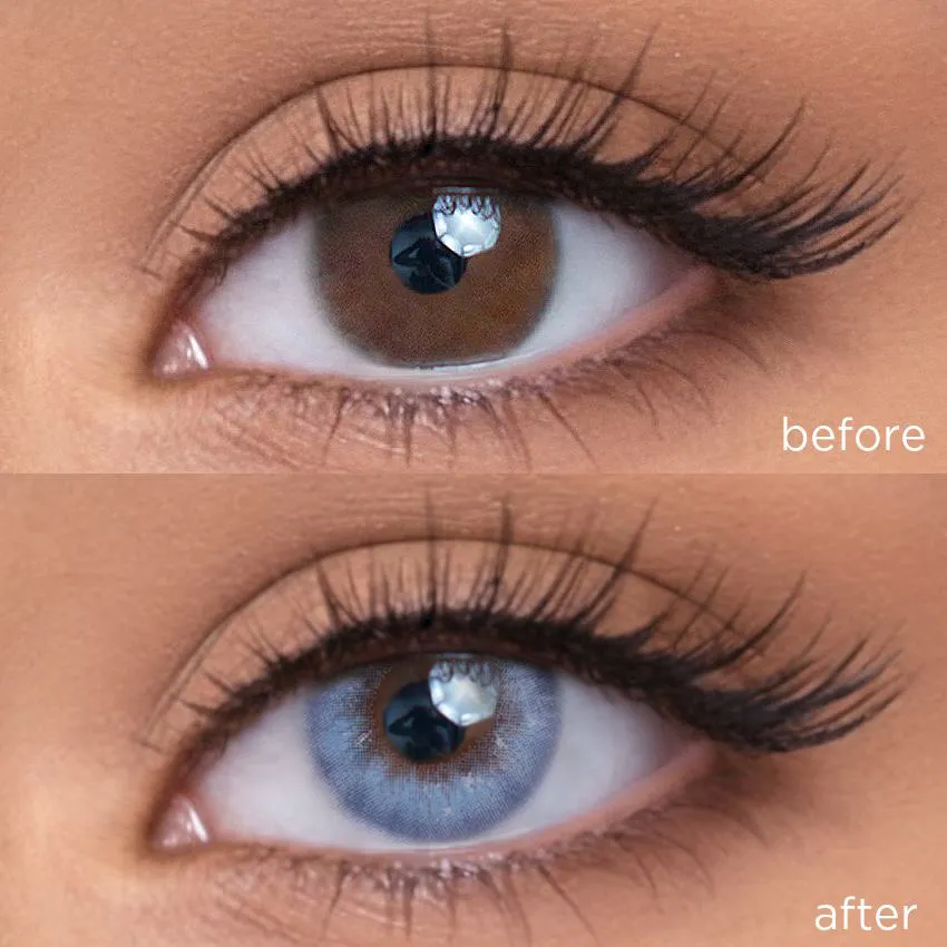 The actual wearing effect might vary mainly due to the difference in original eye color and iris pattern. Other factors such as lighting, camera filter, eye shape, etc., might cause differences as well.