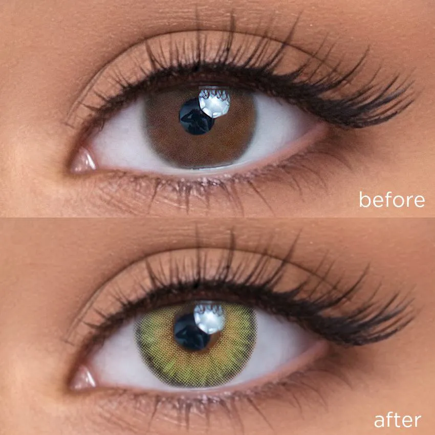 The actual wearing effect might vary mainly due to the difference in original eye color and iris pattern. Other factors such as lighting, camera filter, eye shape, etc., might cause differences as well.