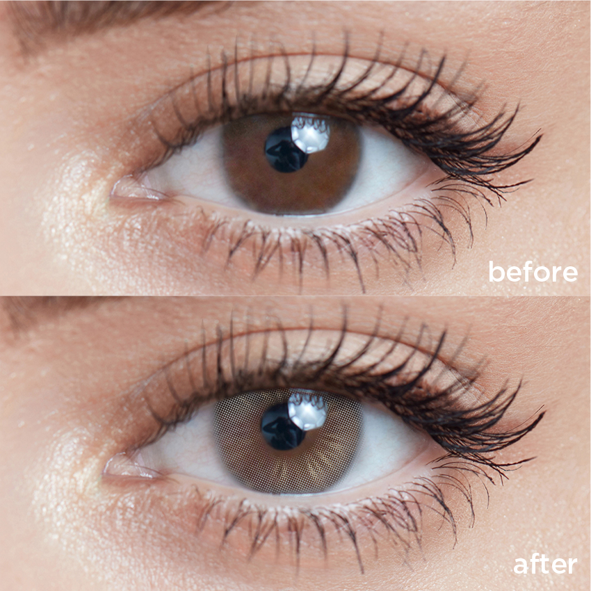 The actual wearing effect might vary mainly due to the difference in original eye color and iris pattern. Other factors such as lighting, camera filter, eye shape, etc., might cause differences as well.