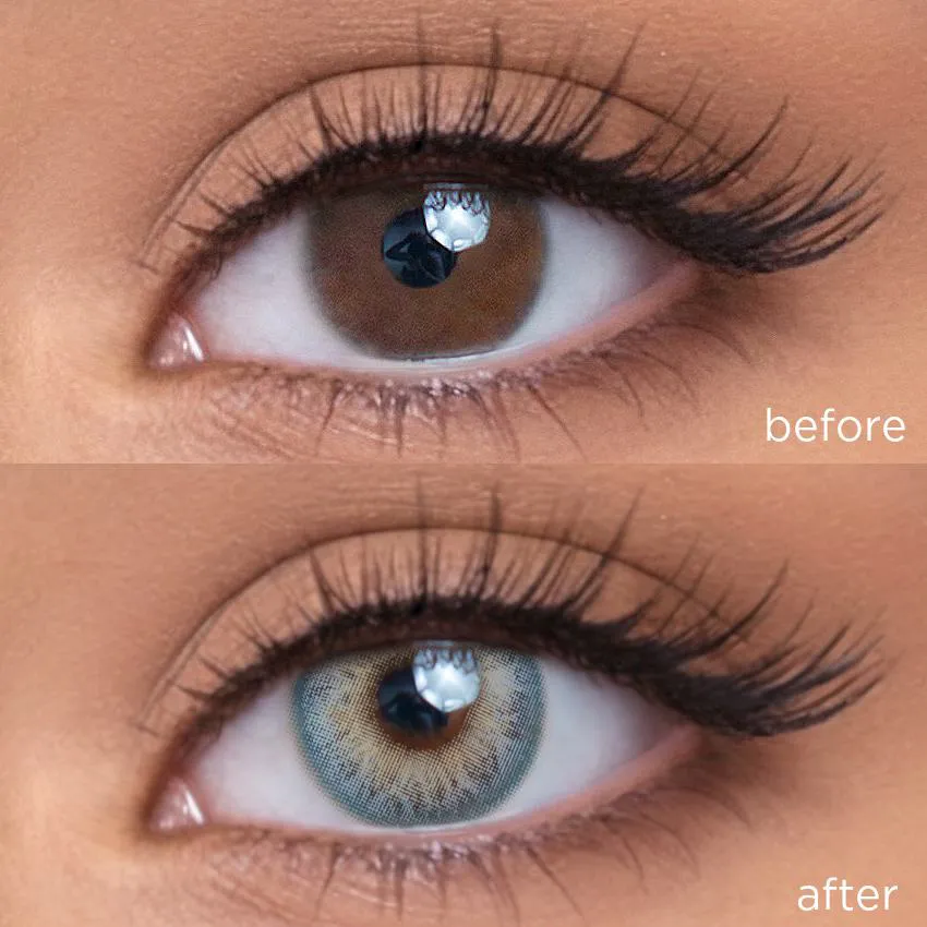 The actual wearing effect might vary mainly due to the difference in original eye color and iris pattern. Other factors such as lighting, camera filter, eye shape, etc., might cause differences as well.