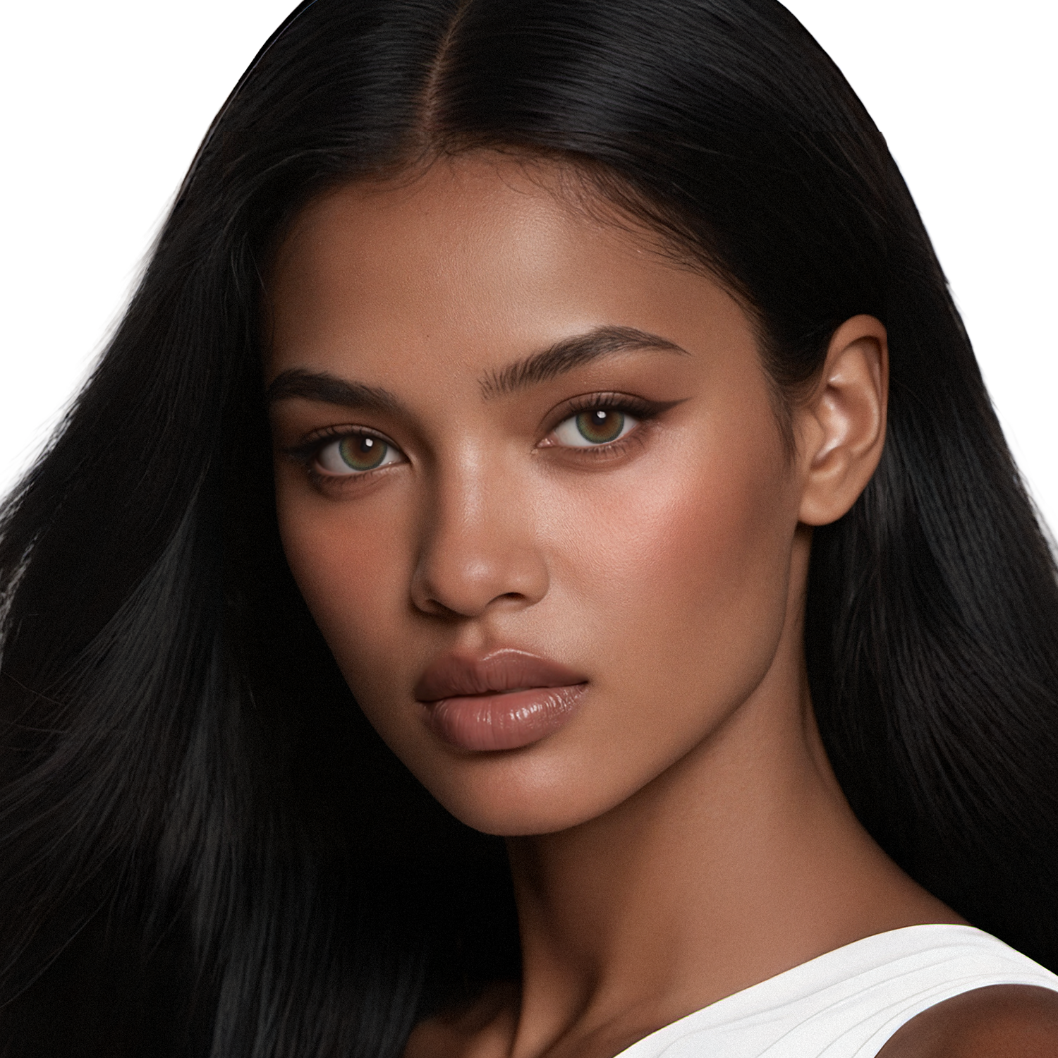 Warm-toned makeup is the perfect complement to this lens, enhancing its earthy green hues and bringing out its full depth and natural radiance.