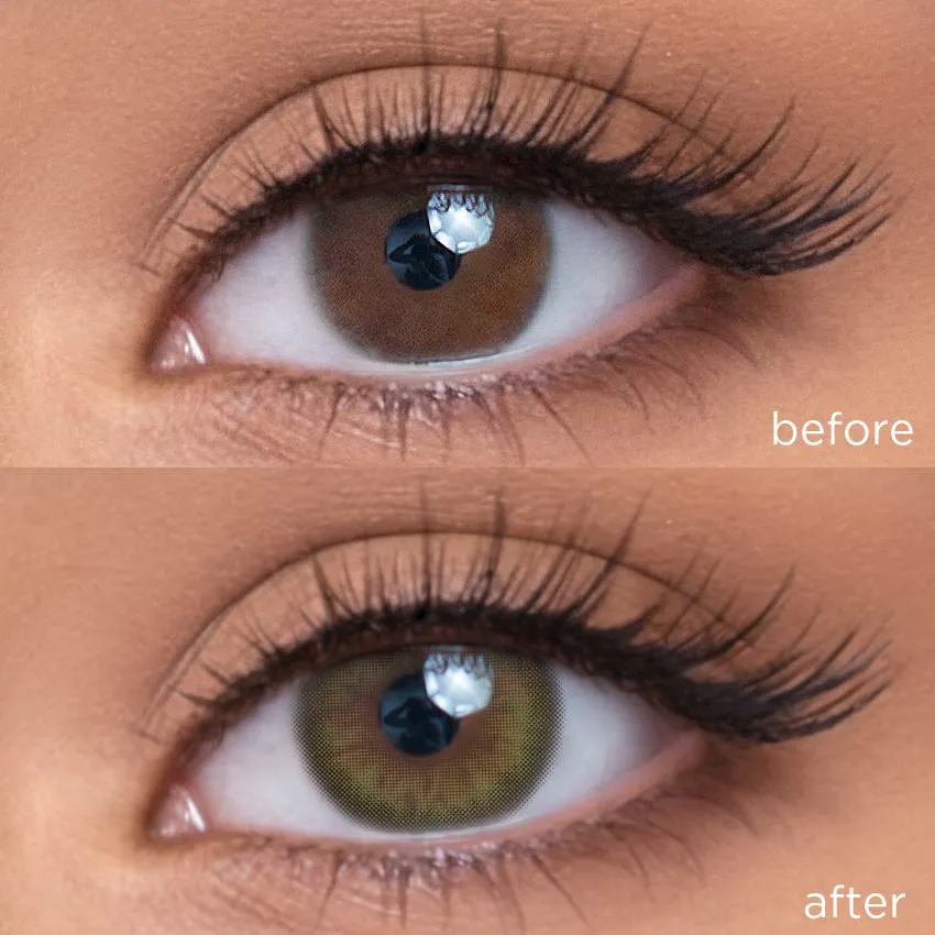 The actual wearing effect might vary mainly due to the difference in original eye color and iris pattern. Other factors such as lighting, camera filter, eye shape, etc., might cause differences as well.