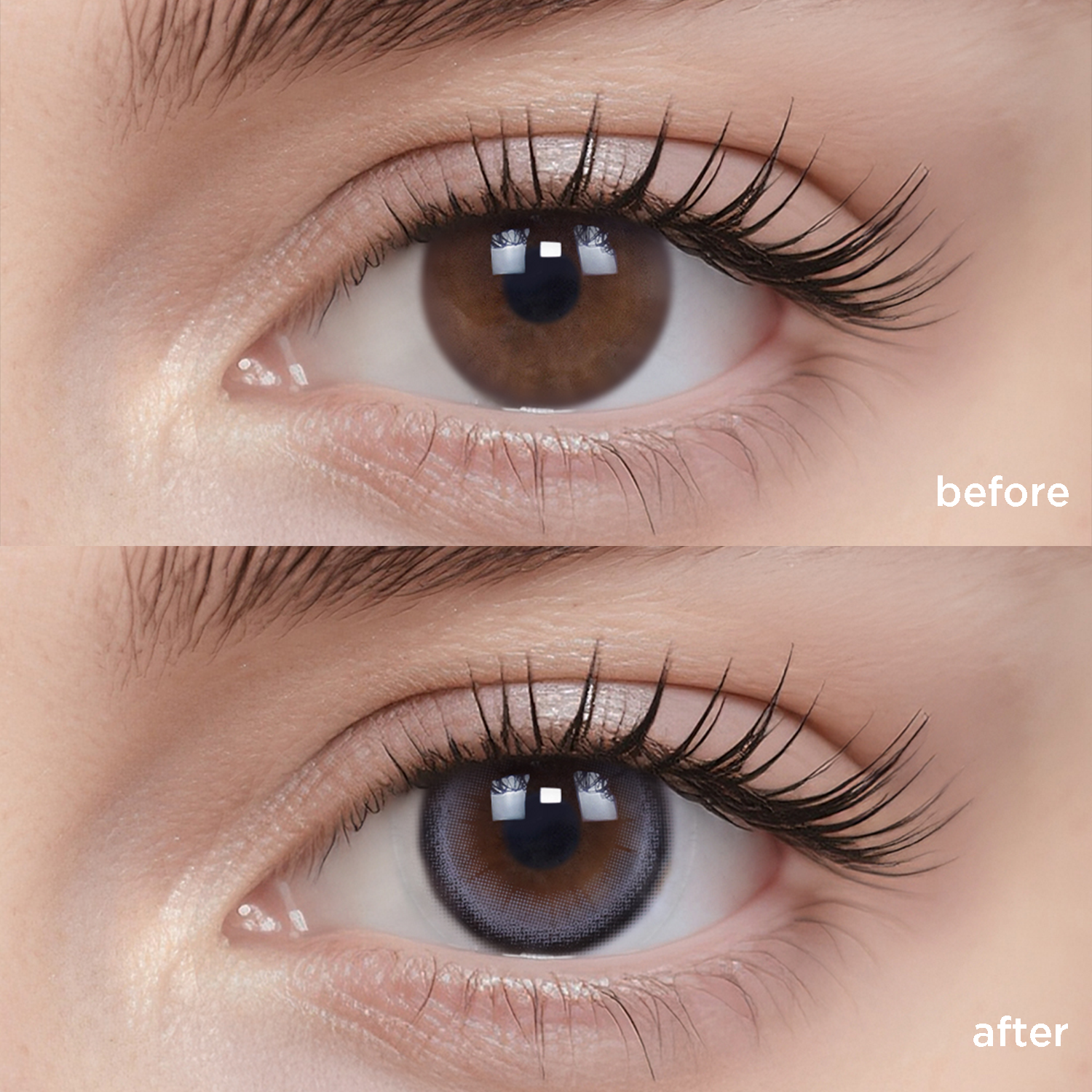 The actual wearing effect might vary mainly due to the difference in original eye color and iris pattern. Other factors such as lighting, camera filter, eye shape, etc., might cause differences as well.