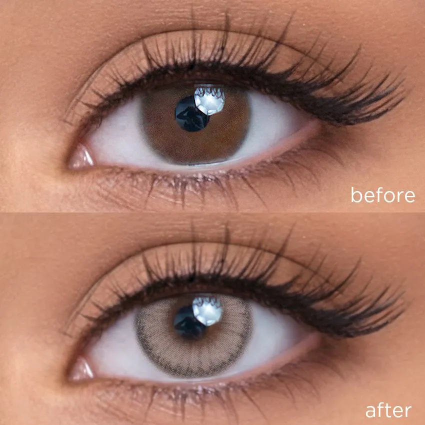 The actual wearing effect might vary mainly due to the difference in original eye color and iris pattern. Other factors such as lighting, camera filter, eye shape, etc., might cause differences as well.